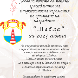 Тържествена церемония за връчване на годишна награда „Шабла“