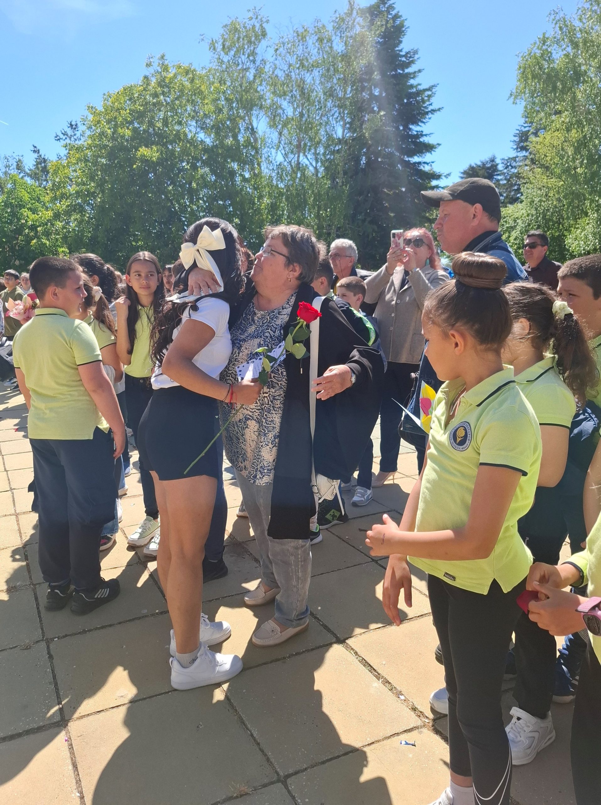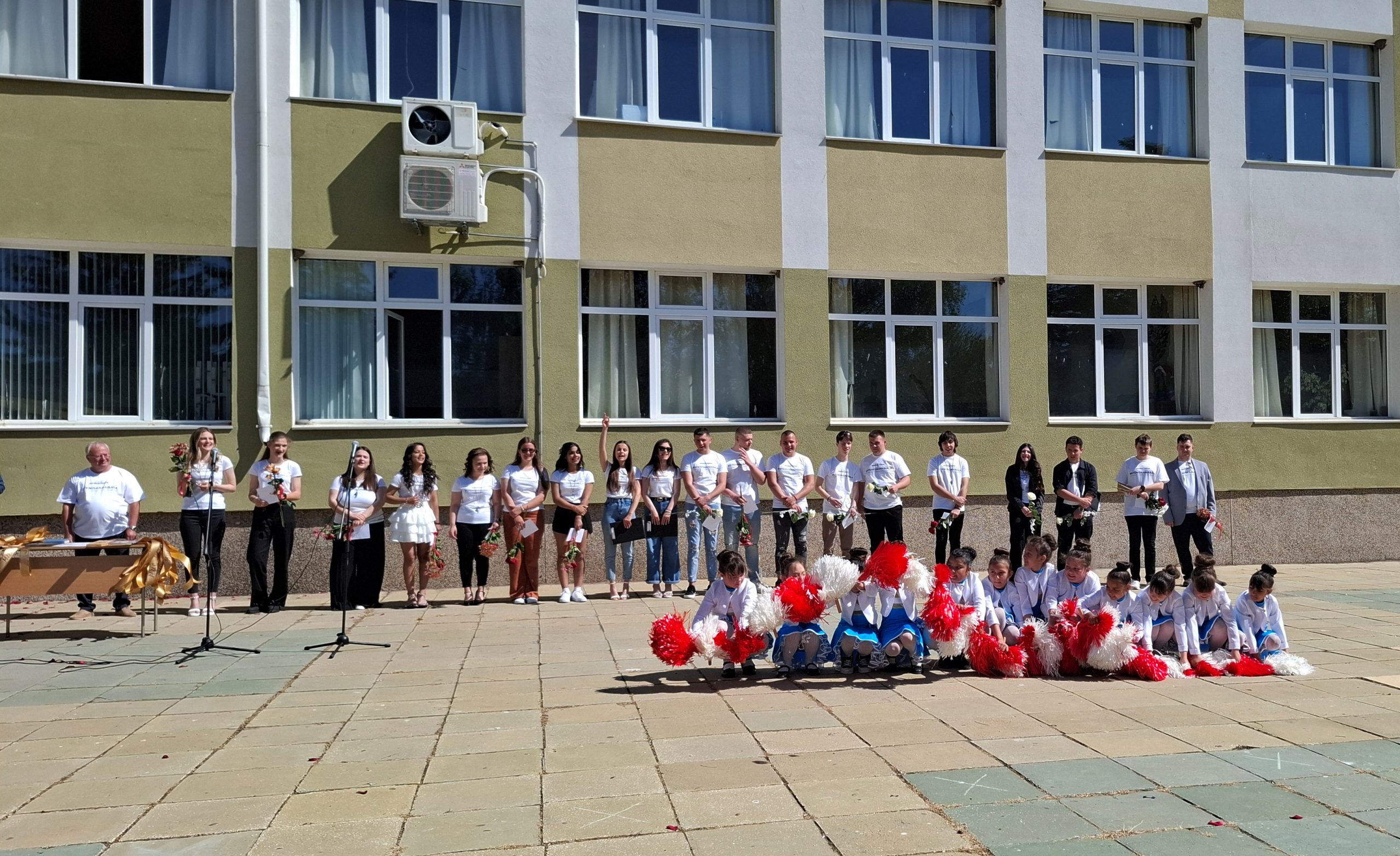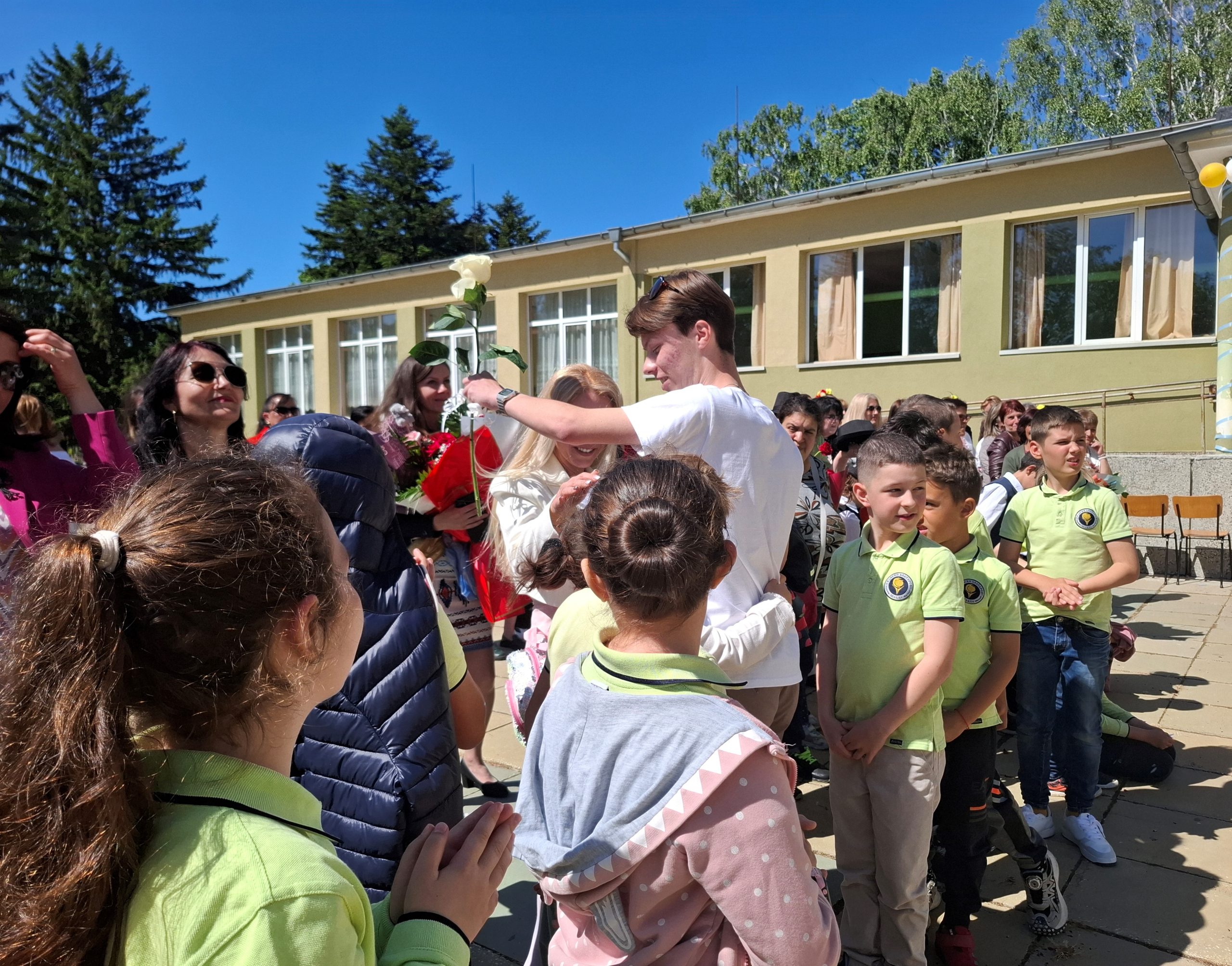 По-малките ученици посрещнаха абитуриентите с цветя, балони и шпалир, под звуците на последния училищен звънец. Сълзи на радост и тъга се смесиха по лицата на зрелостниците, докато си казваха „довиждане“ с учителите и съучениците.