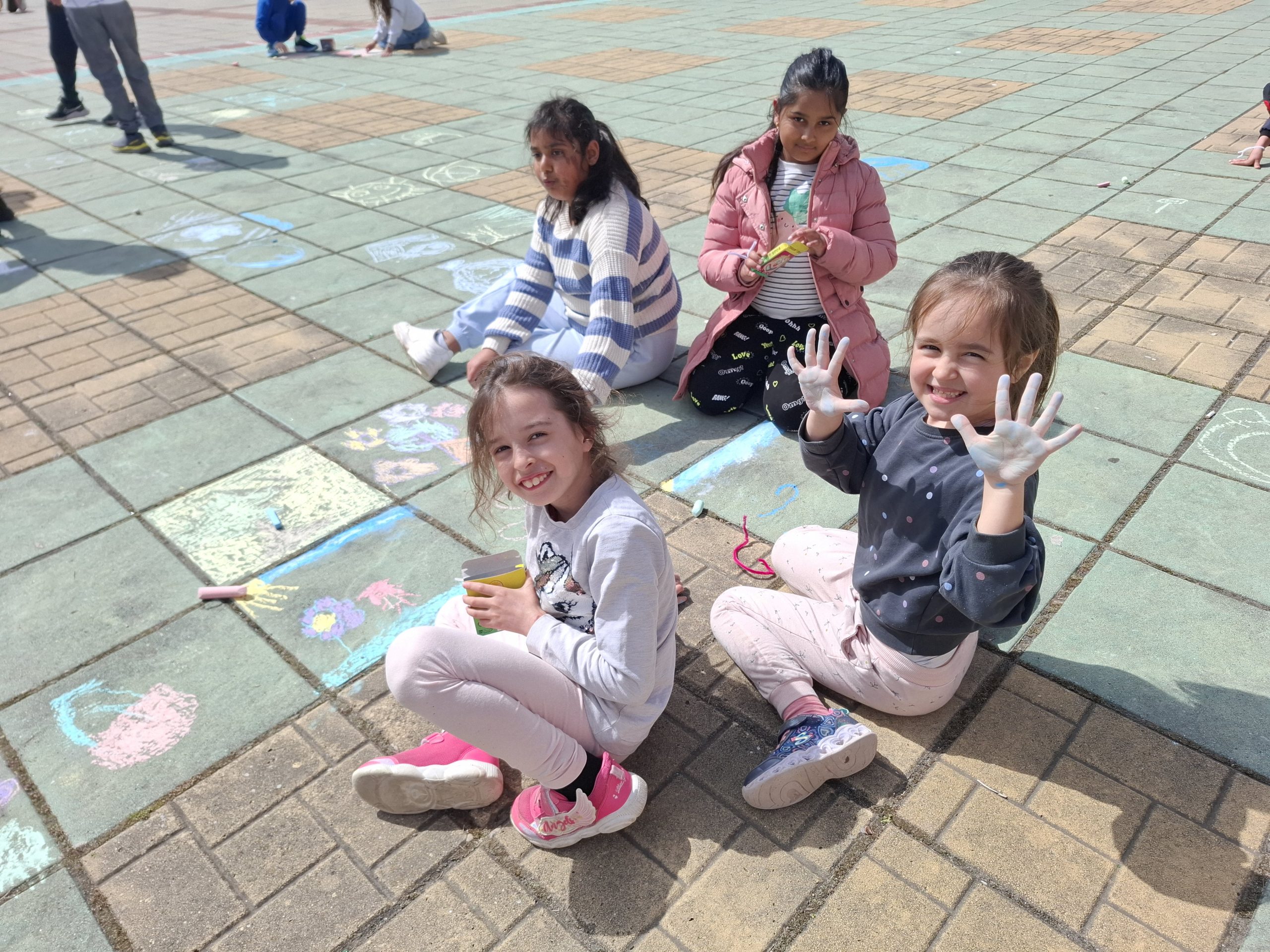 Топлият пролетен ден предразположи малките художници да проявят старание и въображение – цветни рисунки „оживяха“ на площада в центъра на града. Третата творческа задача беше децата да открият и съберат възможно най-много яйца.